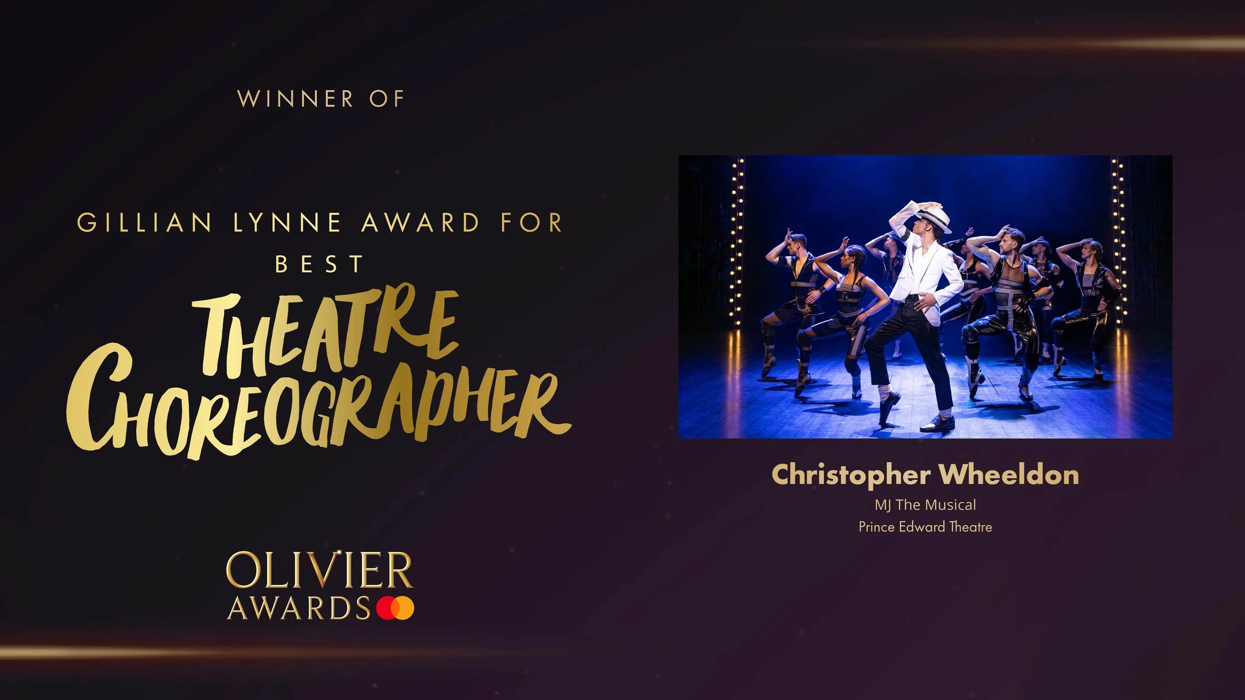 Congratulations to Christopher Wheeldon for winning the Gillian Lynne Award for Best Theatre Choreographer at the 2025 Olivier Awards held at the Royal Albert Hall on Sunday for his work on MJ The Musical at the Prince Edward Theatre.
