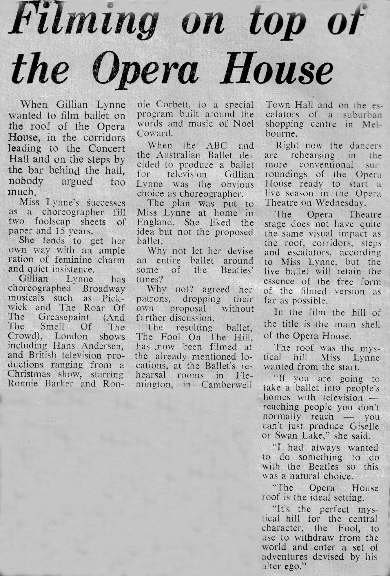 Filming on top of Sydney Opera House 8 Oct Written By Toby Mansfield Filming on top of Sydney Opera House20 September 1975 - Australian Press Toby Mansfield