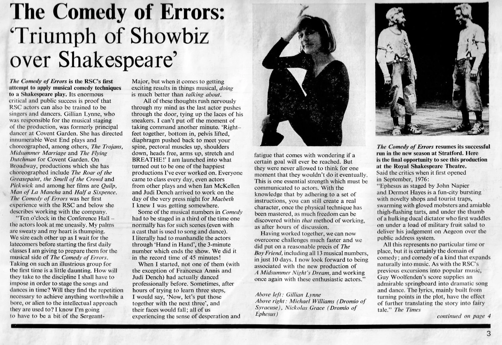 The Comedy of Errors: Triumph of Showbiz over Shakespeare 10 Oct Written By Toby Mansfield The Comedy of Errors: Triumph of Showbiz over Shakespeare12 October, 1976 View fullsize Toby Mansfield