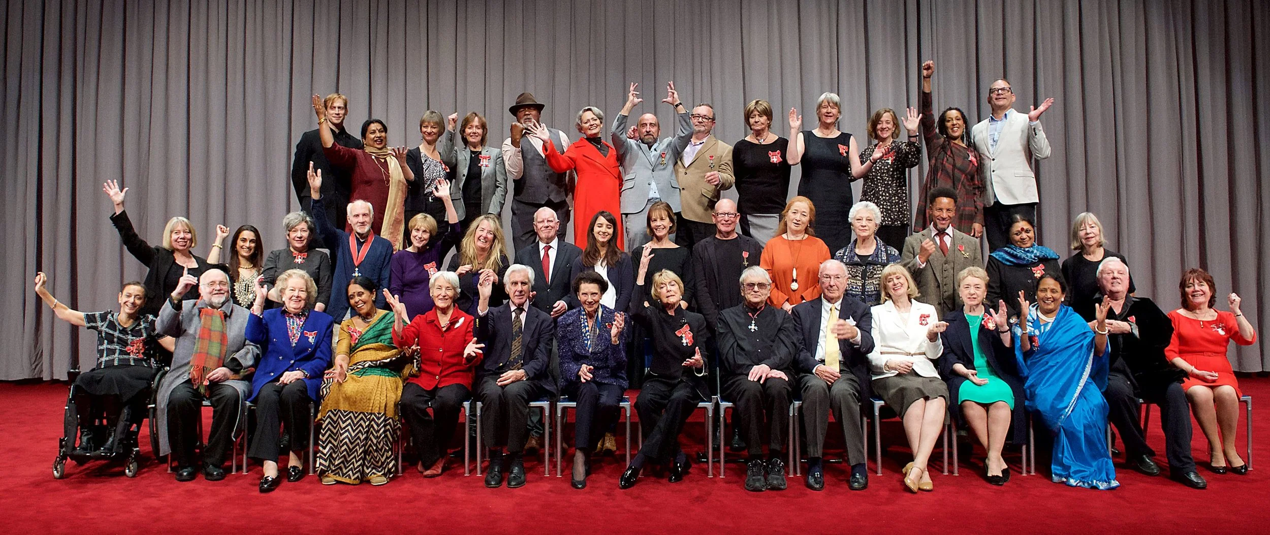 Photo: Top Row Left to Right: Edward Watson MBE, Piali Ray OBE, Jeanetta Laurence OBE, Prue Skene CBE, Namron OBE Esq., Jeanette Siddall CBE, Fergus Early OBE, Peter Huggins MBE, Nadine Senior MBE, Linda Jasper MBE, Kiki Gale MBE, Deborah Baddoo MBE, Mark Baldwin OBE Middle Row Left to Right: Marie McCluskey MBE, Nina Yadavan Rajarani MBE, Lea Anderson MBE, John Ashford CBE, Janet Smith MBE, Dr Scilla Dyke MBE, Colin Nears CBE, Cassa Pancho MBE, Deborah Bull CBE, Anthony Van Laast MBE, Veronica Lewis MBE, Dame Monica Mason, Kenneth Tharp OBE, Mira Kaushik OBE, Valerie Bourne CBE Front Row Left to Right: Celeste Dandeker-Arnold OBE, Richard (Dick) Matchett MBE, Sheila Labhart OBE, Bisakha Sarker MBE, Lady Anya Sainsbury, Donald Whyte MacLeary OBE, Dame Beryl Grey, Dame Gillian Lynne, Robert Cohan CBE, Clement Crisp OBE, Janet Lewis MBE, Brenda Last OBE, Nilima Devi MBE, Douglas Squires OBE, Hazel Rayson MBE