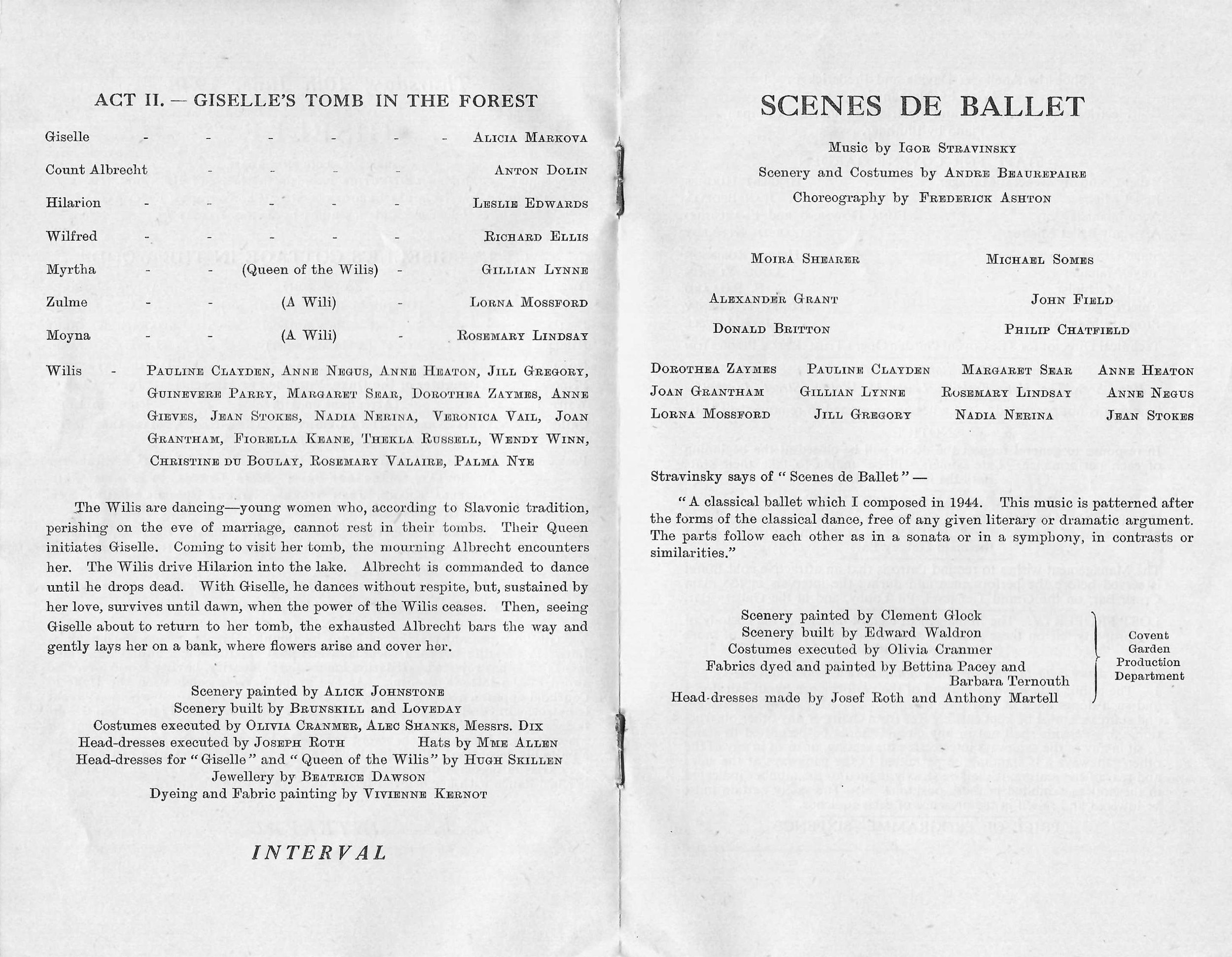 - the first is a performance from June 1948 at Covent Garden featuring Giselle, where she performs as ‘Myrtha, Queen of the Wilis’ with Alicia Markova and Anton Dolin; and Scenes De Ballet with Moira Shearer and Michael Somes -