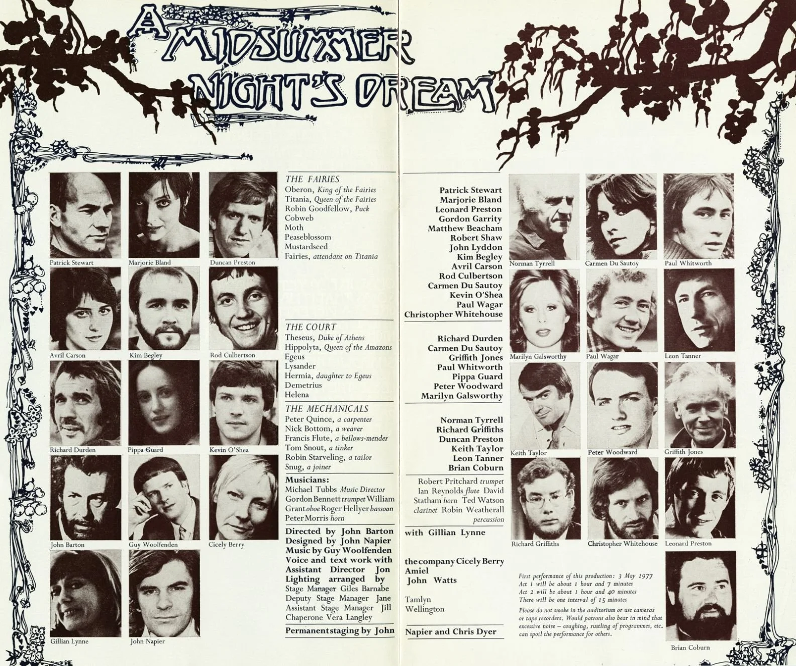Cast included: Patrick Stewart (Oberon), Richard Griffiths (Bottom), Pippa Guard, Carmen du Sautoy (Hippolyta), Richard Durden (Theseus), Peter Woodward, Leonard Preston, Duncan Preston, Paul Whitworth, Marilyn Galsworthy