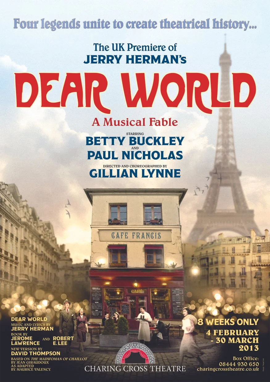 Dear World is a musical with music and lyrics by Jerry Herman and book by Jerome Lawrence and Robert E. Lee. It originally opened on Broadway in 1969 and won Angela Lansbury a Tony Award for Leading Actress for her performance of Countess Aurelia.