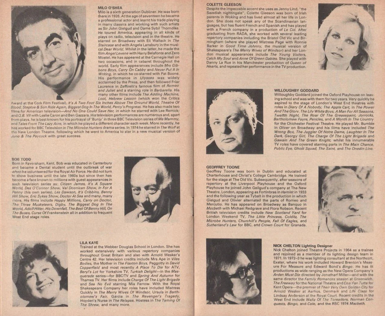 Cast included: Tommy Steele, Milo O’Shea, Colette Gleason, Bob Todd, Lila Kaye, Willoughby Goddard, Geoffrey Toone