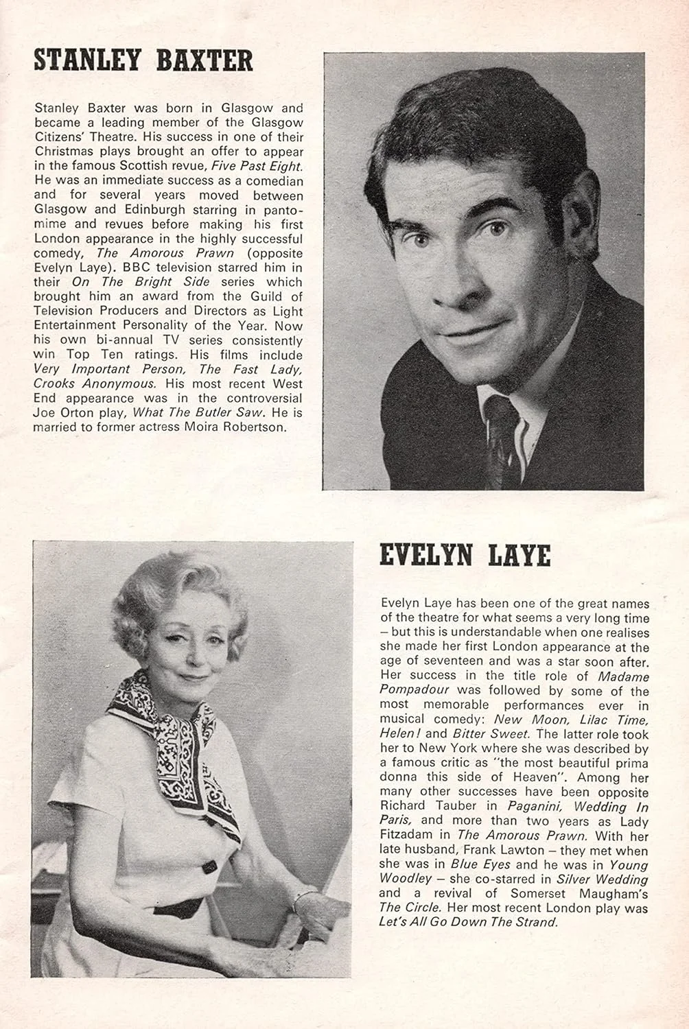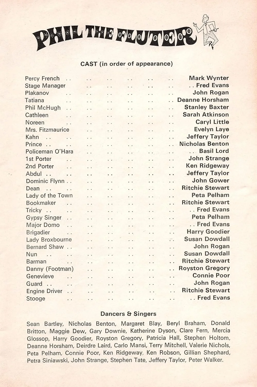 Cast included: Stanley Baxter, Evelyn Laye, Mark Wynter, Basil Lord, John Gower, Sarah Atkinson, Caryl Little, Fred Evans