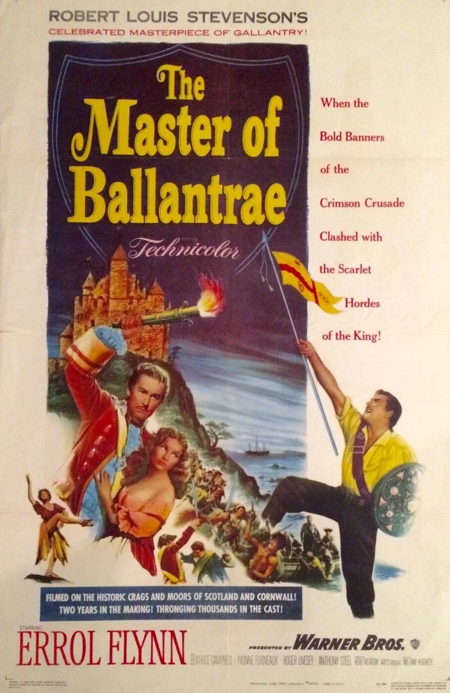 This British adventure film starred Hollywood heart-throb Errol Flynn, along with Anthony Steel and Roger Livesey, in an adaptation of Robert Louis Stevenson’s 1889 novel and tells the story of two sons of a laird who clash over the family estate and a lady in 18th century Scotland.